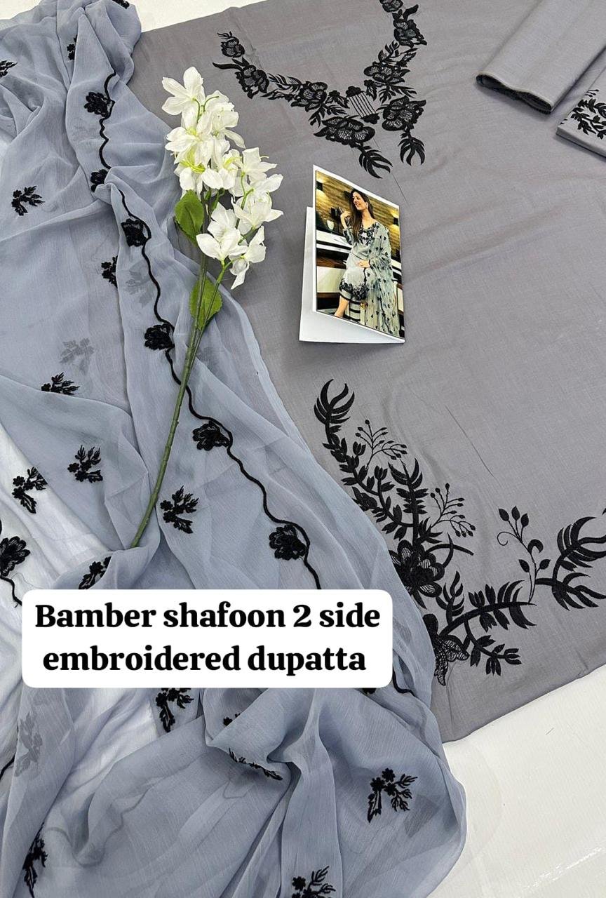 ✔️2 Side border Embroidered Bhamber shafoon dupatta ♥️